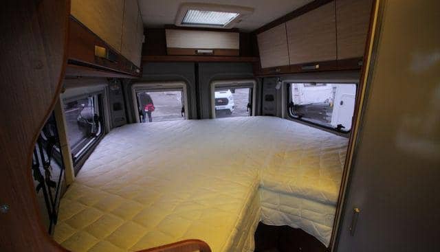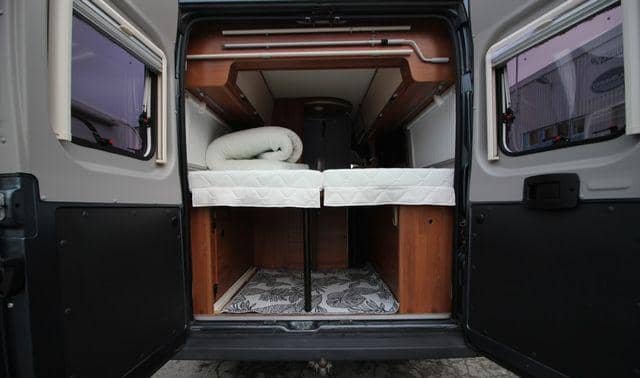 Deux lits simples, longitudinaux bien que le véhicule ne fasse pas plus de 6 mètres de long !