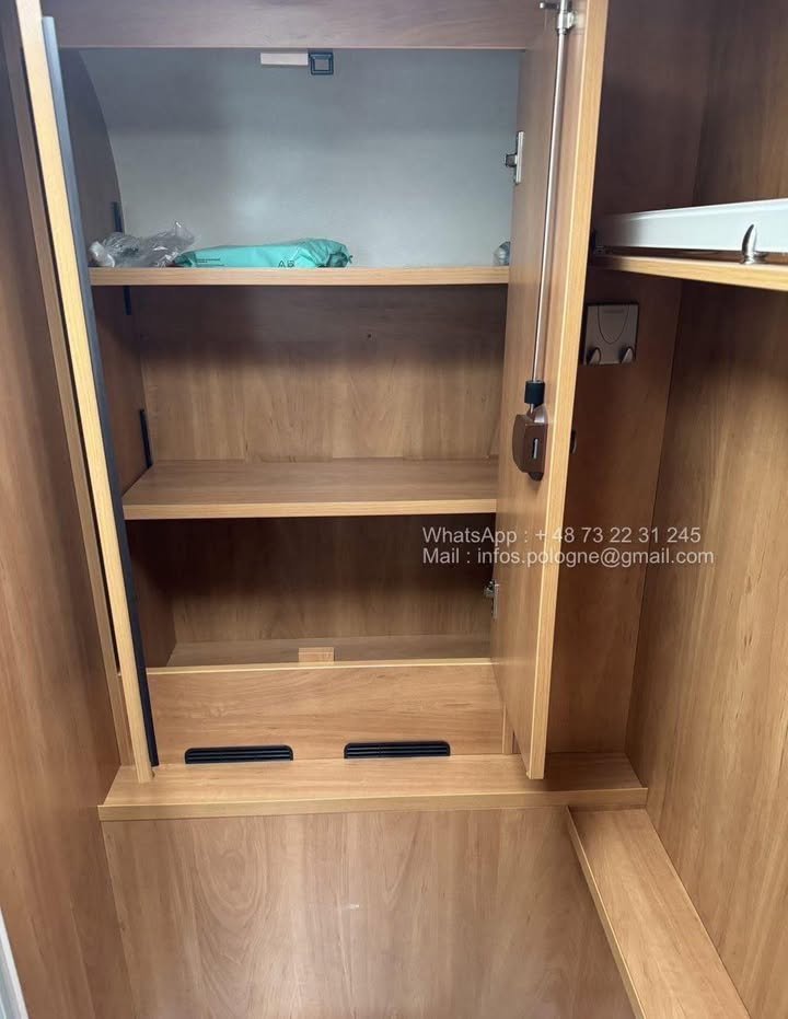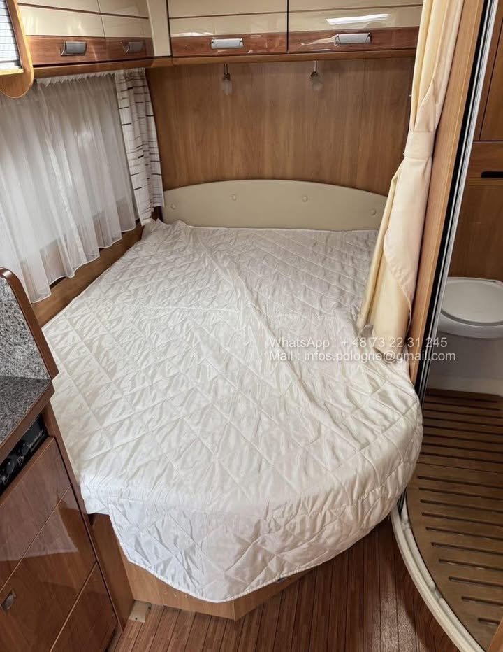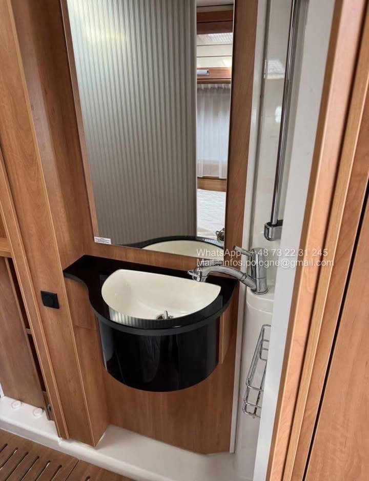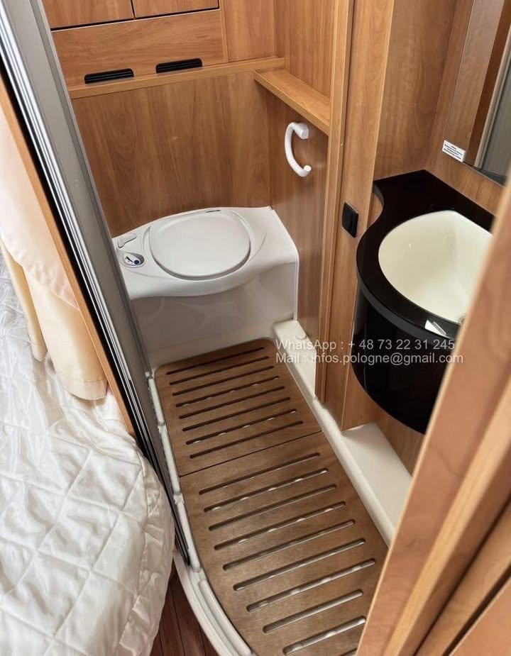 Son plan intérieur avec lit français à l’arrière offre un agencement optimisé et un excellent confort de couchage. Le coin toilette avec douche attenante est fonctionnel et spacieux.