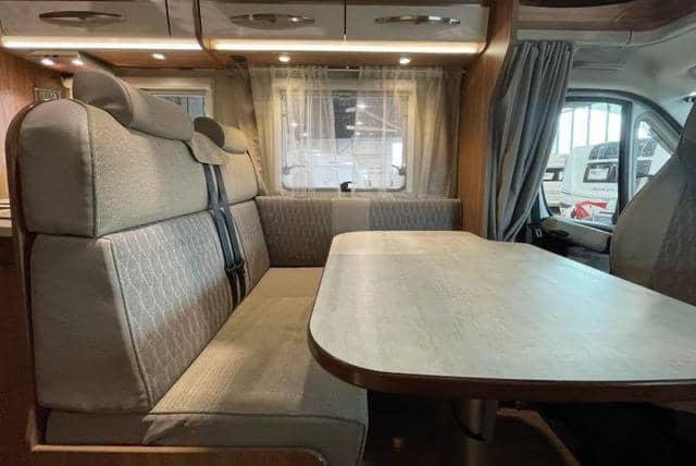 Coin salon spacieux avec un bon confort d’assise. La table peut être ajustée dans toutes les directions et abaissée pour offrir des couchages supplémentaires.