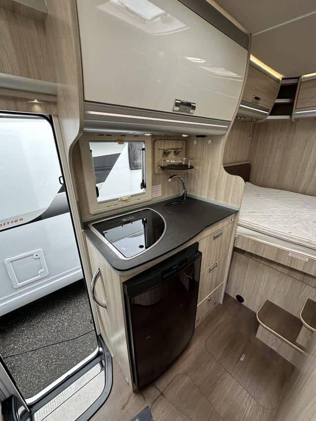 Un lit spacieux à l’arrière rend l’espace de vie encore plus spacieux. Le lit escamotable à l’avant est encore plus spacieux, ce qui permet d’amener des visiteurs ou d’avoir des lits séparés sans problème.