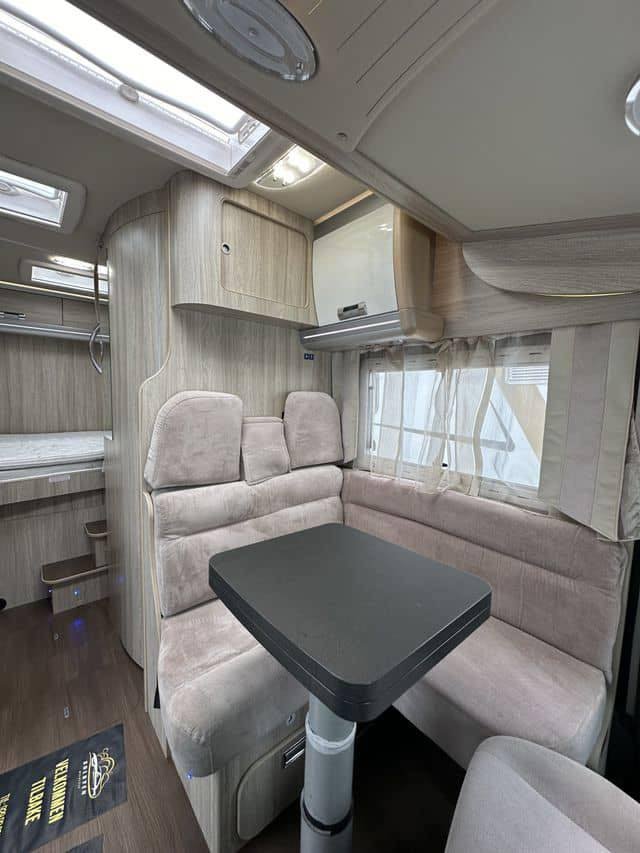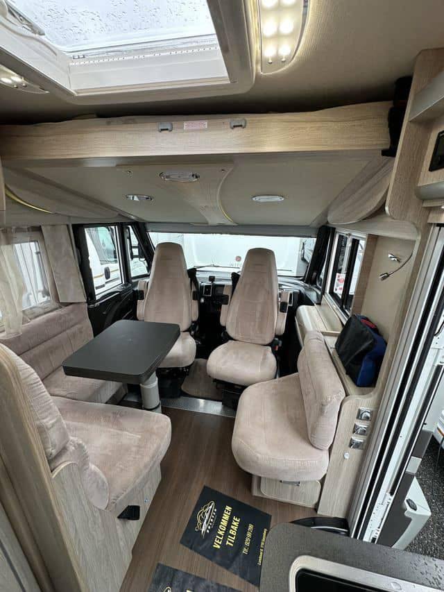 Les sièges sont recouverts du même tissu clair et agréable que les sièges du conducteur. Il y a suffisamment de place pour que 4 personnes puissent s’asseoir et profiter d’une soirée jeux ou d’un bon repas.