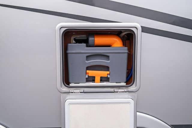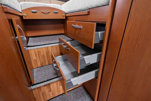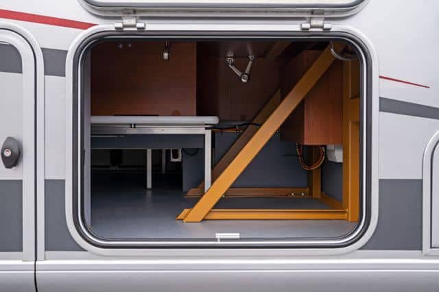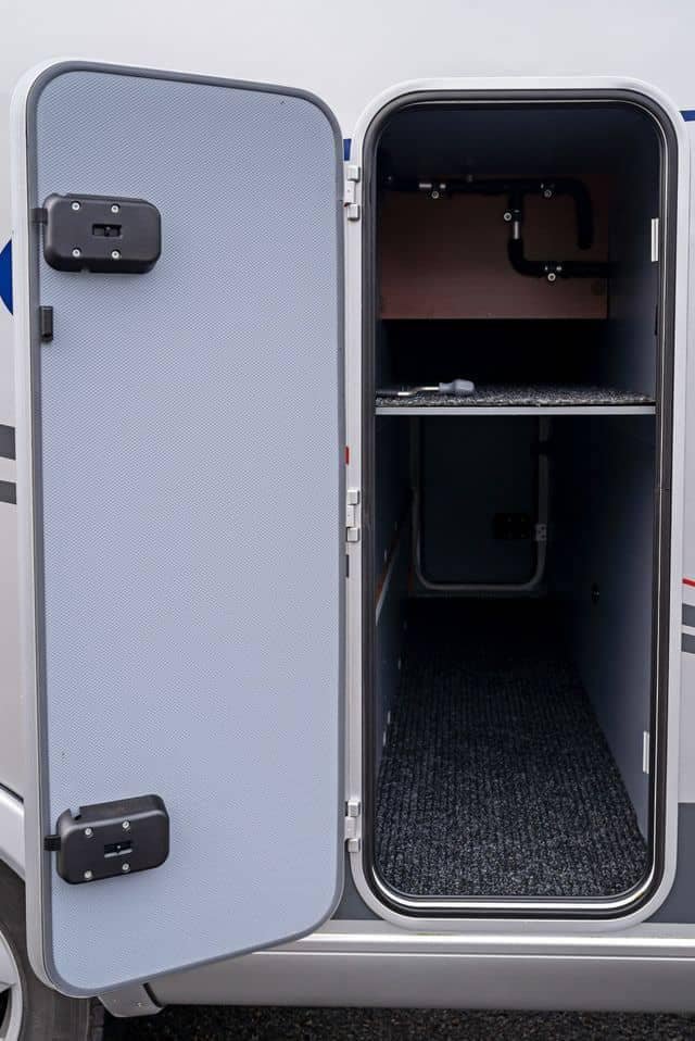 Ce véhicule dispose également d’un double plancher, qui offre un espace de rangement supplémentaire, en plus des réservoirs d’eau hors gel et du chauffage Alde.
