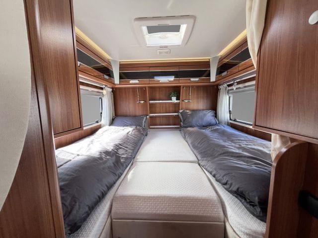 À l’arrière de la voiture, vous entrez dans la chambre principale, où vous pouvez choisir entre deux lits simples,