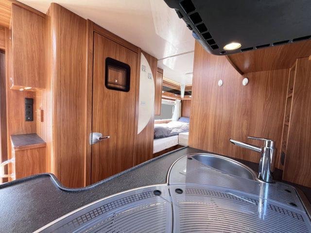 Ce véhicule dispose d’un salon très complet, avec la possibilité de déplier la table ou de l’allonger pour en faire un lit.