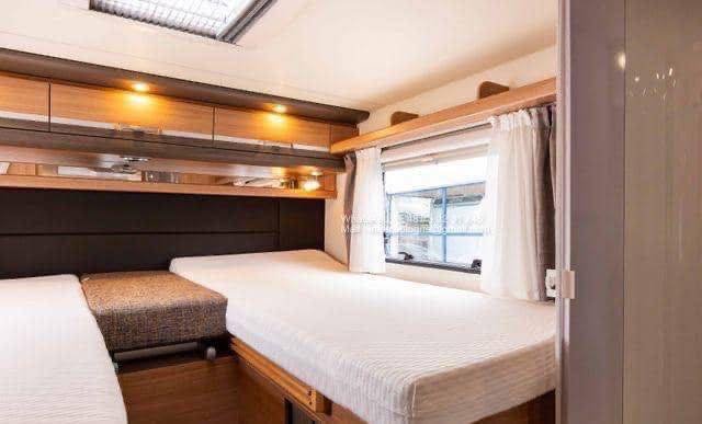 • Deux lits jumeaux à l’arrière avec salle d’eau et douche séparées de chaque côté