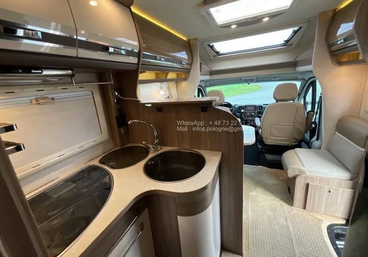 Prix : 23500€! Rapido S7 / 790DF – Camping-car haut de gamme – 2014- 93700 KM- 150 ch – Boîte automatique – Panneau solaire – Lit central Queen Size – 4 places carte grise – 4 couchages