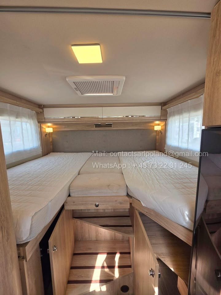 Les lits arrière disposent d’un accès facile par marche et de nombreux rangements en dessous.