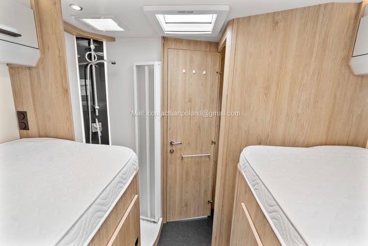 À l’arrière se trouve un bel espace nuit avec deux lits jumeaux confortables, modulables si souhaité.