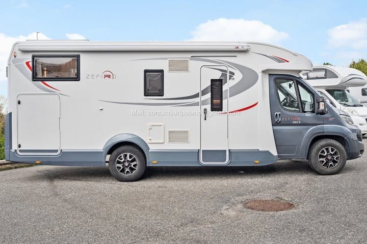 Prix: 24500€! Roller Team Zefiro 284 P | 2018 | Automatique | 39 200 km | 150 ch | 3 500 kg | 5 places carte grise | 4 couchages |Panneaux solaires | Batterie lithium | Porte-vélos