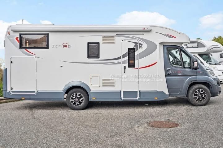 Prix: 24500€! Roller Team Zefiro 284 P | 2018 | Automatique | 39 200 km | 150 ch | 3 500 kg | 5 places carte grise | 4 couchages |Panneaux solaires | Batterie lithium | Porte-vélos