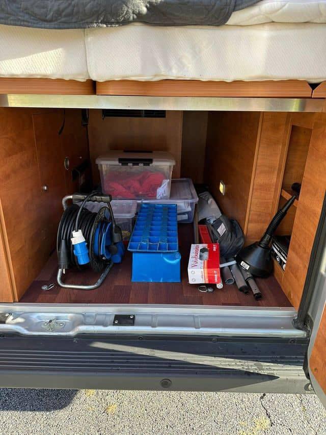 Superbe fourgon Carthago Malibu 640 avec lits longitudinaux entré dans l’atelier, bien équipé et peu kilométré.