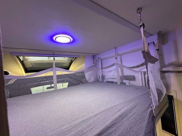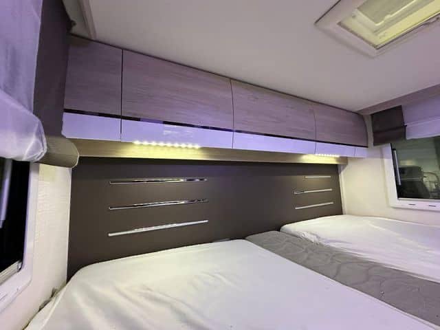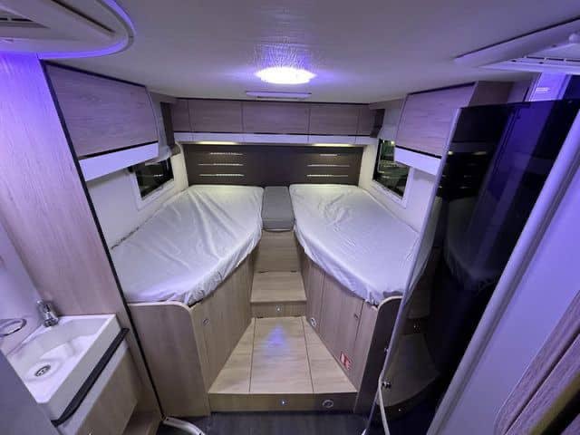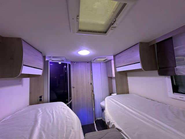 2 lits simples à l’arrière et un lit escamotable à l’avant