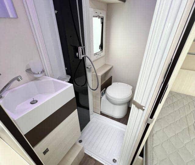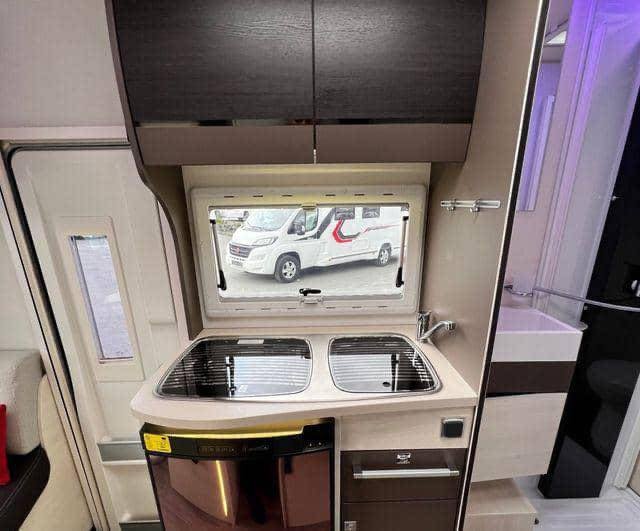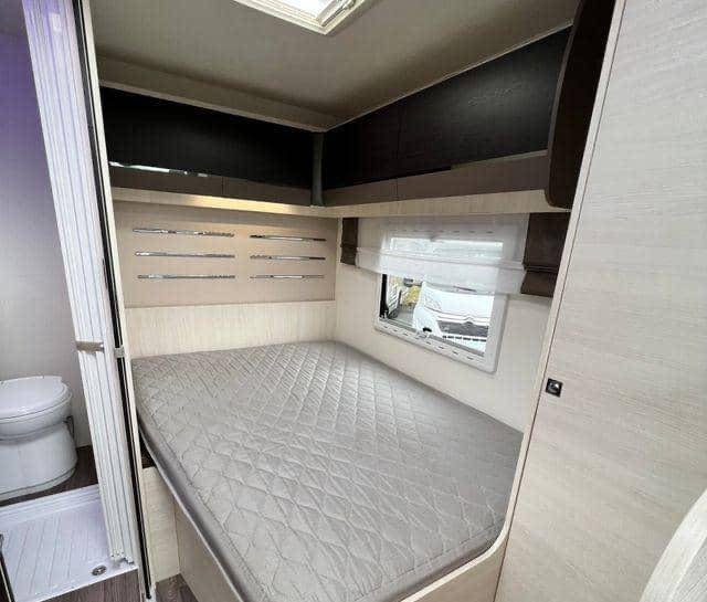 Un Challenger Genesis 195 élégant, facile à conduire et pratique, avec un lit double à l’arrière, une salle d’eau longitudinale avec de grandes toilettes et une douche, et une cuisine spacieuse avec un évier, une plaque de cuisson et un réfrigérateur. La voiture mesure moins de 6 mètres de long et peut donc être utilisée comme voiture de tourisme sur les ferries et les ponts, et peut se garer sur des places de parking.
