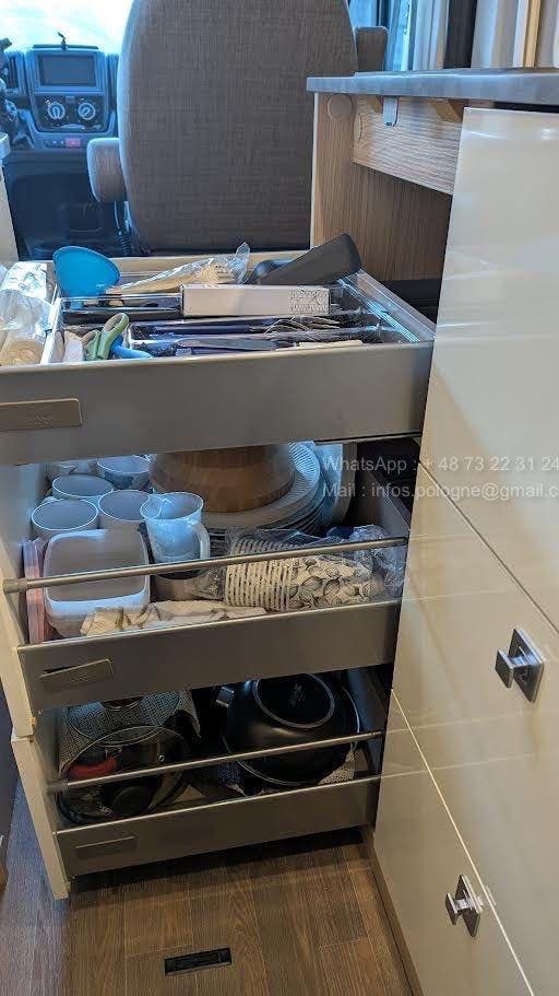• Nombreux placards et tiroirs de rangement