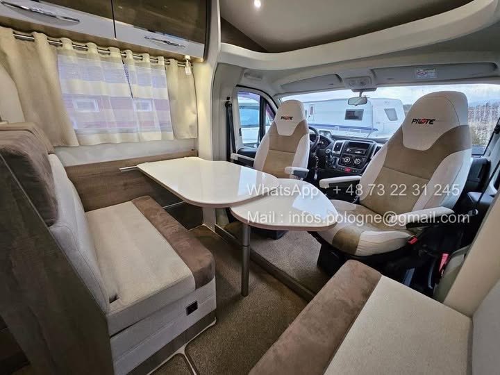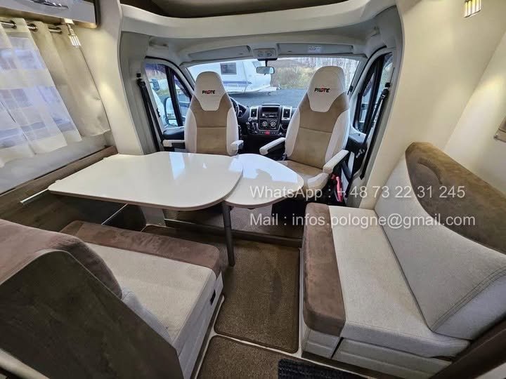 Prix : 25000€ ! Pilote P740GJ – 2018 – 150 ch – 48 000 km – 4 places – 4 couchages – Lit Queen Bed