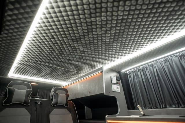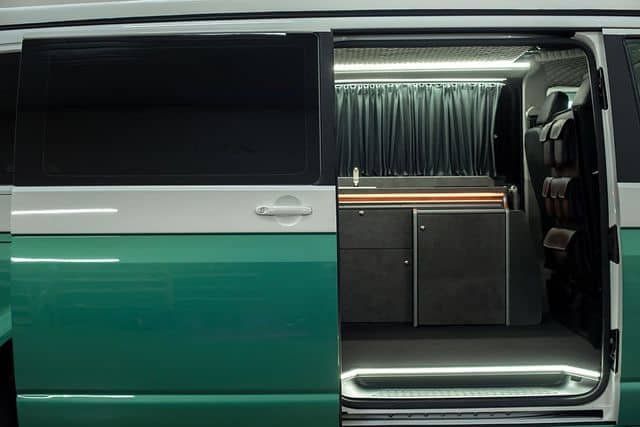 Le toit relevable offre de l’espace pour la tête à l’intérieur du véhicule et peut être converti en un lit double supplémentaire. Que vous regardiez le coucher de soleil ou que vous vous réveilliez au son des vagues, cette voiture vous donnera un sentiment de liberté et de proximité avec la nature.