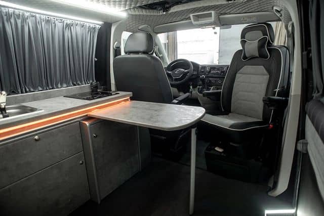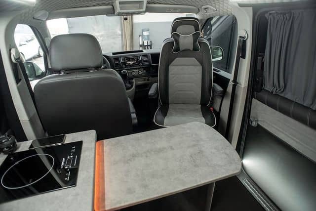 Le VW city est conçu pour vous offrir le meilleur du confort et de la fonctionnalité. Pouvant accueillir jusqu’à 4 personnes, il y a beaucoup de place pour la famille et les amis. L’intérieur est astucieusement conçu avec des sièges pivotants et une banquette arrière qui peut être escamotée pour faire de la place à la table, ou facilement repliée pour devenir un confortable lit double.