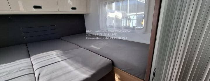 Configuration idéale avec lit double arrière + lit de pavillon électrique, offrant un excellent confort de vie à bord.