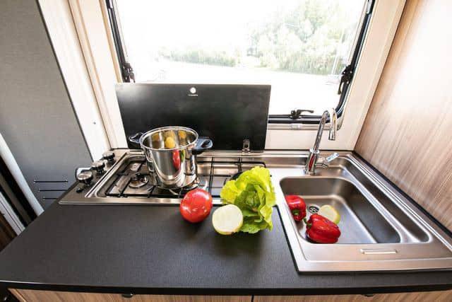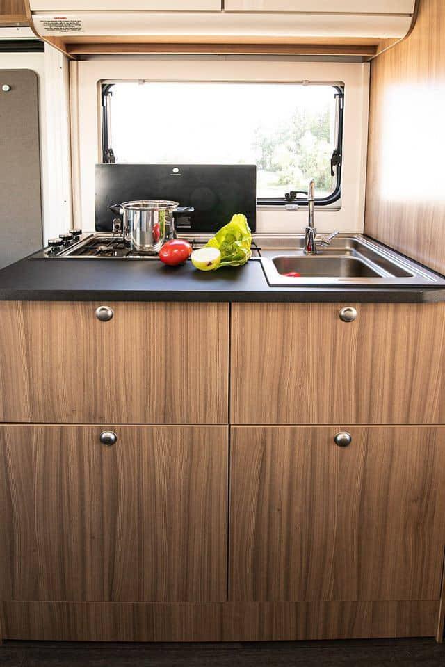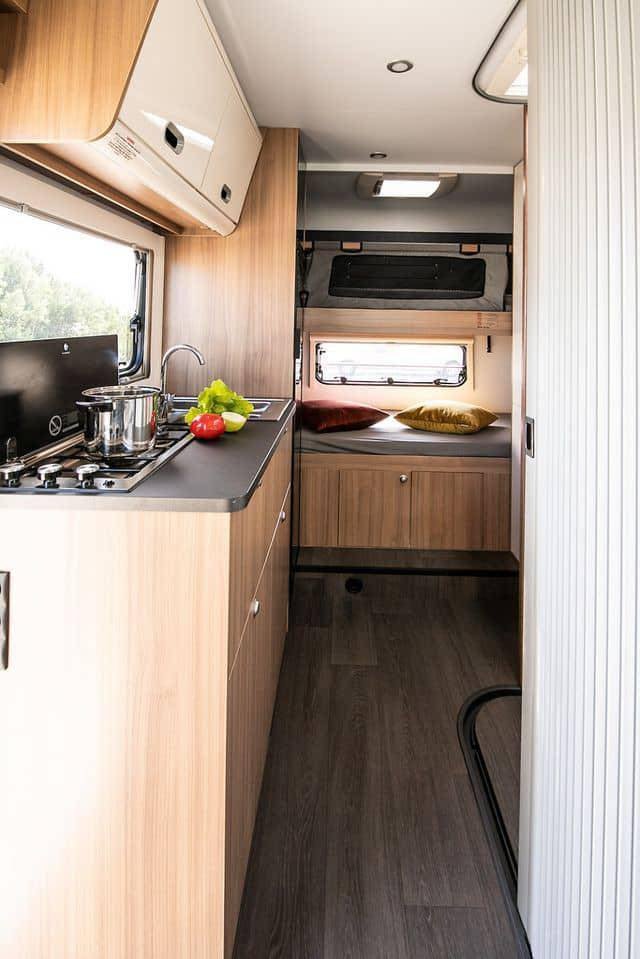 Le camping-car pèse 3/4 de diesel, 1 bouteille de gaz et 1/4 de réservoir d’eau à 3040 kg.