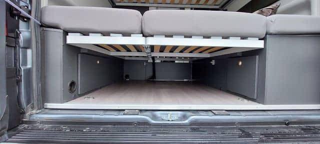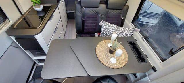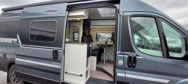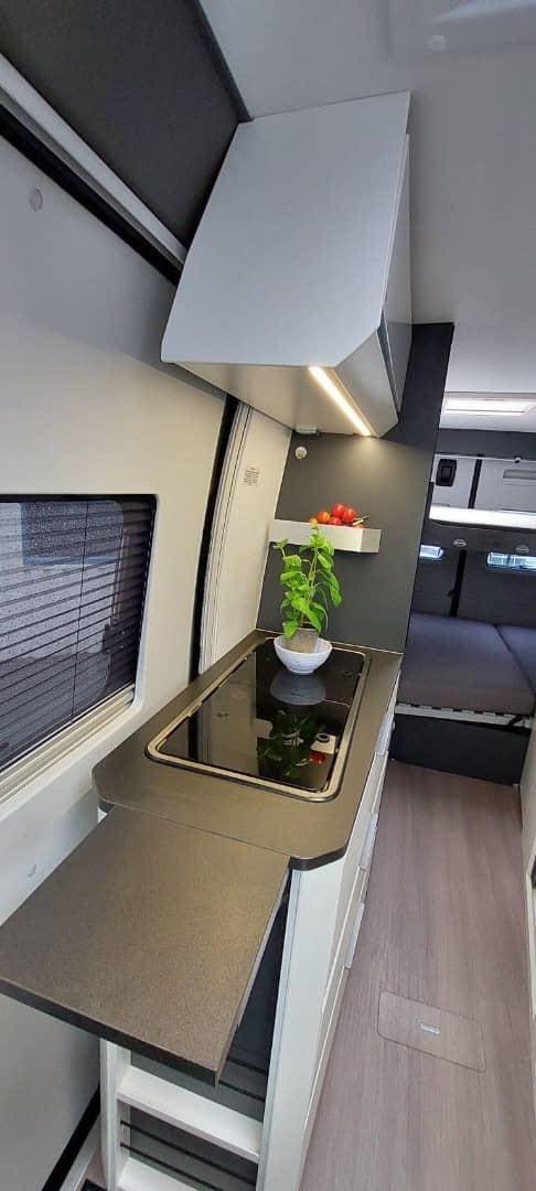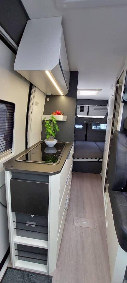 C’est une excellente voiture, meublée de manière pratique, avec beaucoup d’espace de rangement. La cuisine a un bon espace de comptoir pour être si compacte. Il y a 2 lits doubles, avec de bons matelas. Il est bien équipé avec entre autres un panneau solaire, une caméra de recul, une télévision, une antenne TV pour la télévision nationale, un porte-vélos, un auvent, etc. La voiture est agréable à conduire et sa taille lui permet de s’adapter à la plupart des places de stationnement
