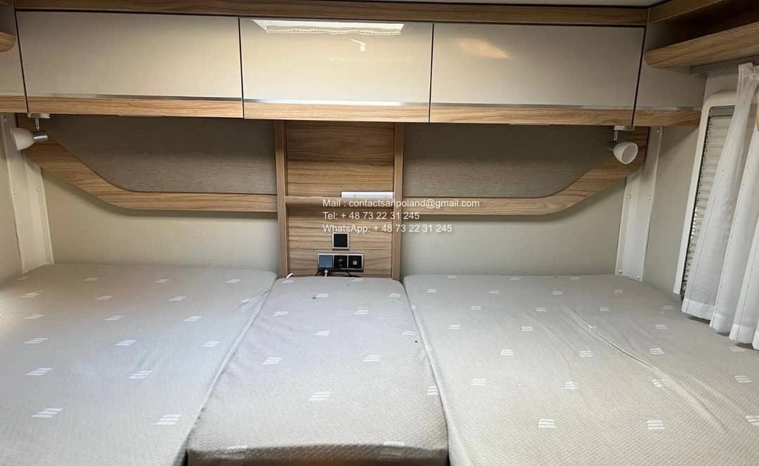 Construit sur porteur Fiat Ducato, ce modèle 2019 avec 64 900 km est équipé du moteur 2.3 Diesel de 150 CH, associé à une boîte manuelle, offrant fiabilité et excellente autonomie pour les longs voyages.