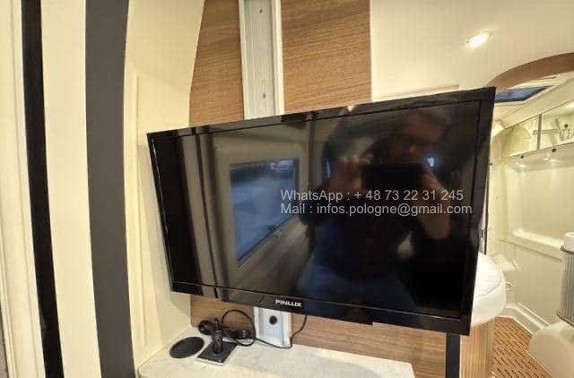 • Salon : banquette, table modulable, TV, éclairage LED, moustiquaire et grande sensation d’espace grâce à l’agencement du bloc salle de bain.