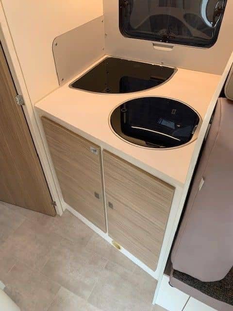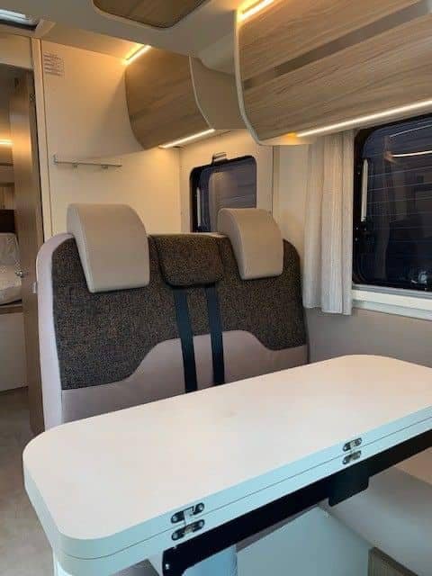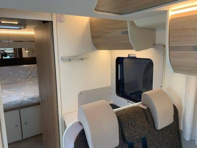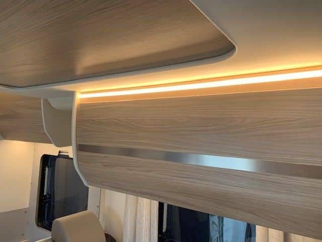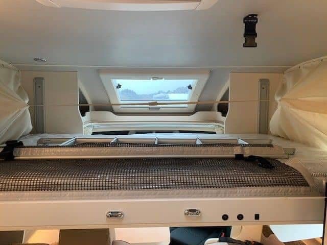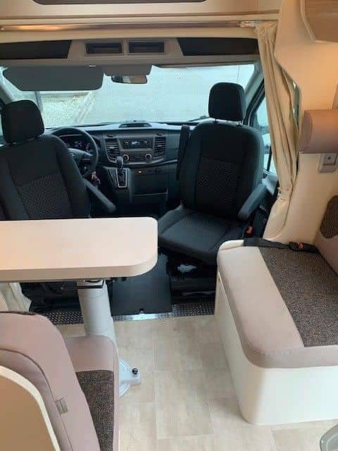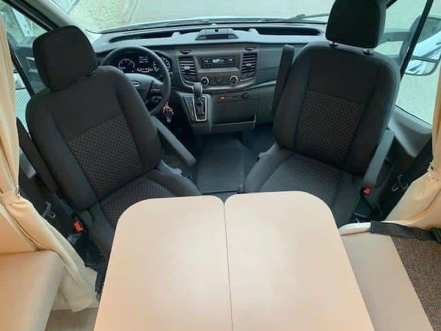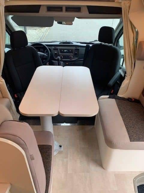 Ford de 170 CV avec transmission automatique, climatisation, régulateur de vitesse, radio DAB avec commande au volant, porte moustiquaire, grand puits de lumière à l’avant, grand réfrigérateur avec tiroir réfrigérant et congélateur, auvent, porte-vélos, filet de sécurité dans le lit pavillon, table basse réversible avec abattant, lumières LED élégantes à commande tactile partout dans la voiture