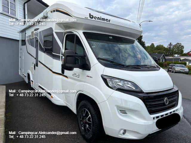 FIAT 2.3 150 CH Benimar MILEO , année : 2019 , kilométrage : 40.000 Km , 5 places , 5 couchages , permis B , panneaux solaires , test d’étanchéité ok , porte vélo ,