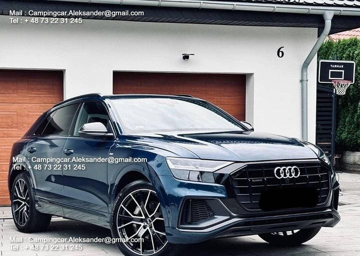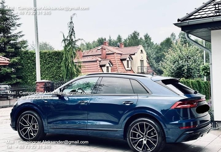 Audi Q8 55 TFSI 3.0 V6 340 CH Mild Hybrid en pack S-Line complet (intérieur et extérieur).
