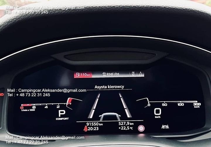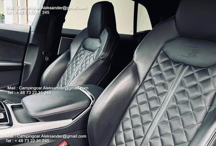 , La voiture se présente superbement. Les jantes Audi Sport de 22 pouces + le pack noir + la couleur spéciale Galaxisblau Metallic avec une brillance éclatante. font que la voiture se démarque fortement. En outre, les boîtiers des rétroviseurs extérieurs sont en carbone.