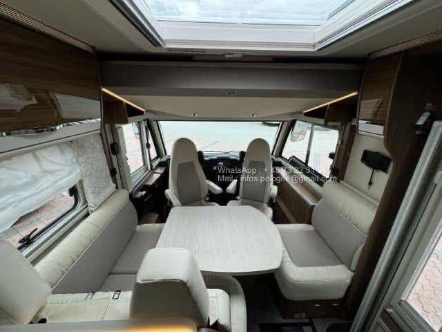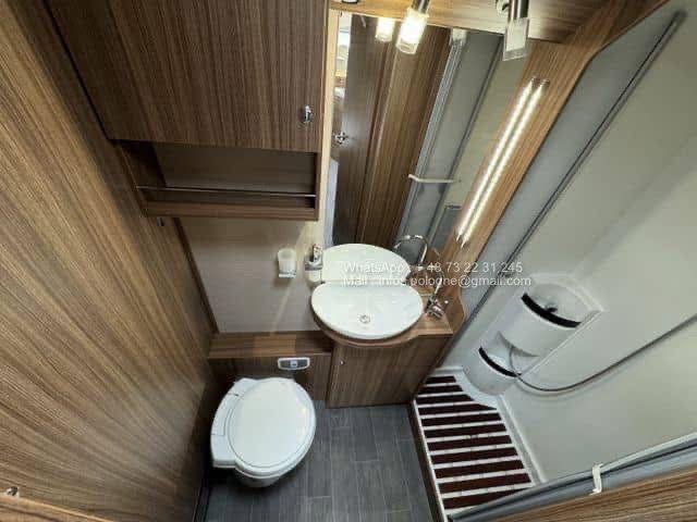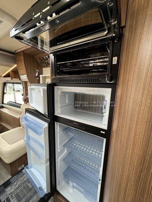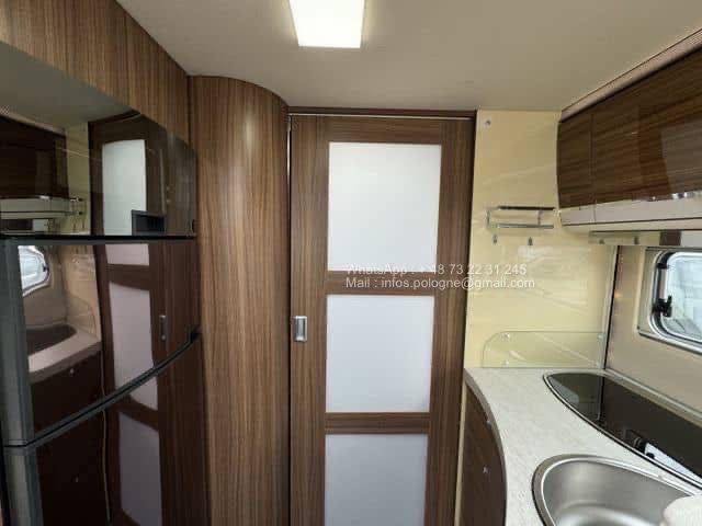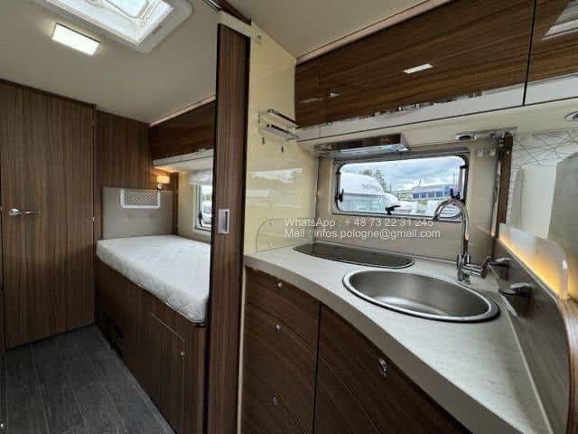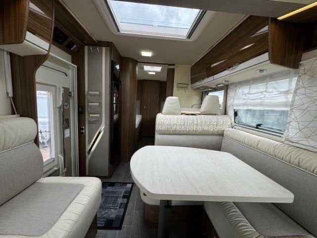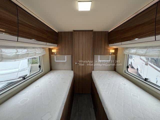 Avec ses 2 lits jumeaux à l’arrière, un lit de pavillon escamotable et un grand salon, il allie confort, habitabilité et technologie. Le chauffage Alde central à eau assure un confort optimal même en plein hiver.