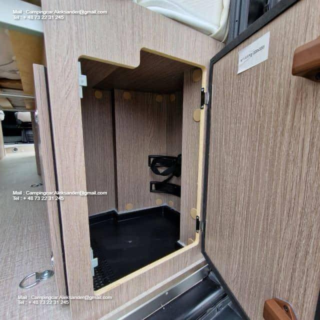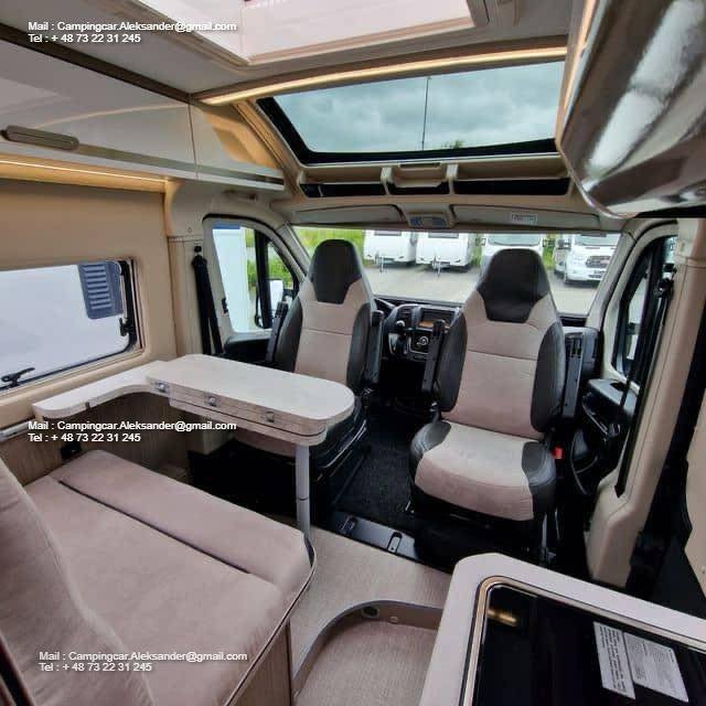 En plus de la « maxicab » (tablette optionnelle au-dessus de la cabine), ce modèle dispose d’une lucarne panoramique au-dessus de la cabine. Il s’agit d’une trappe de toit en verre située à l’avant du véhicule, qui rend la cabine et l’espace de vie beaucoup plus lumineux et spacieux.