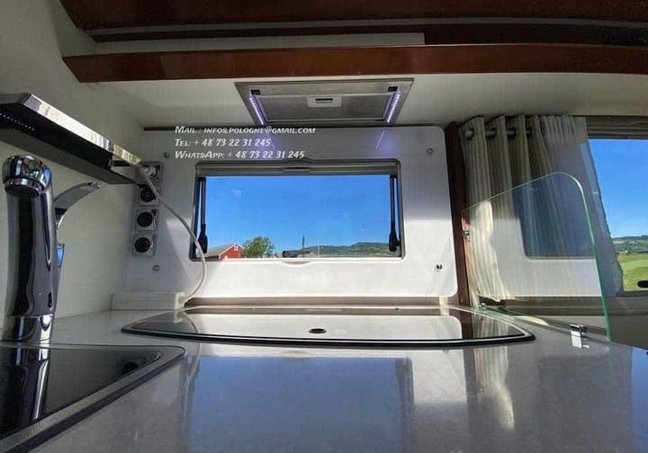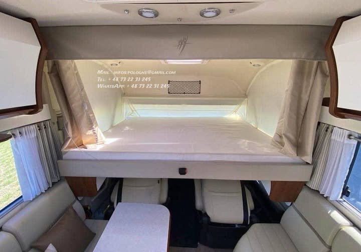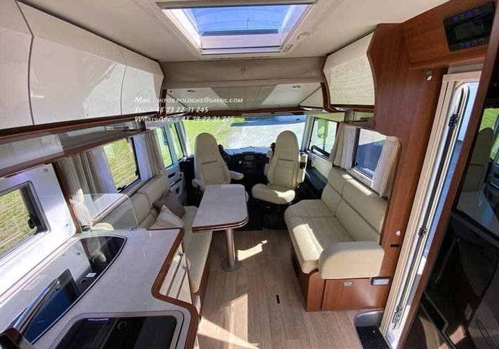 Modèle 2019 avec 59 300 km, doté d’équipements exclusifs : vérins hydrauliques, chauffage Alde et climatisation cellule.