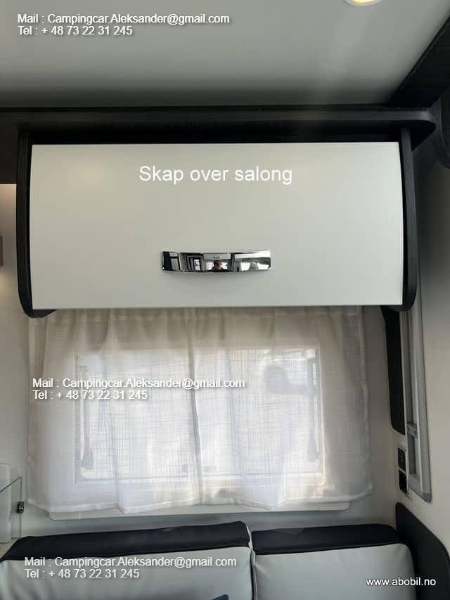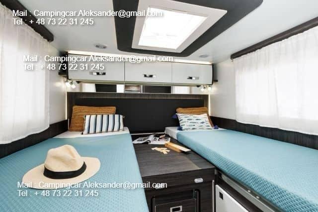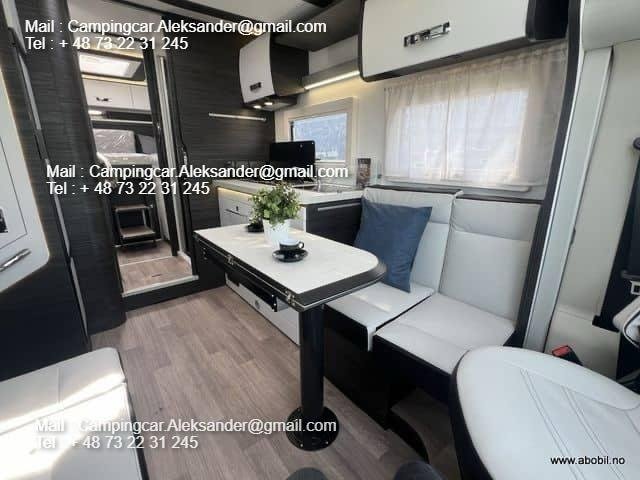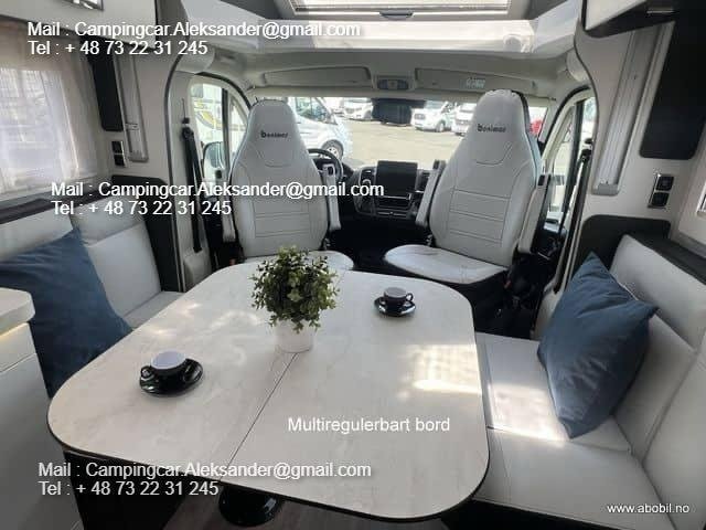 Nous avons un Benimar Mileo 268 2024 en stock ! Plan d’étage populaire avec deux lits simples à l’arrière + solution face à face dans le salon avec lit électrique.