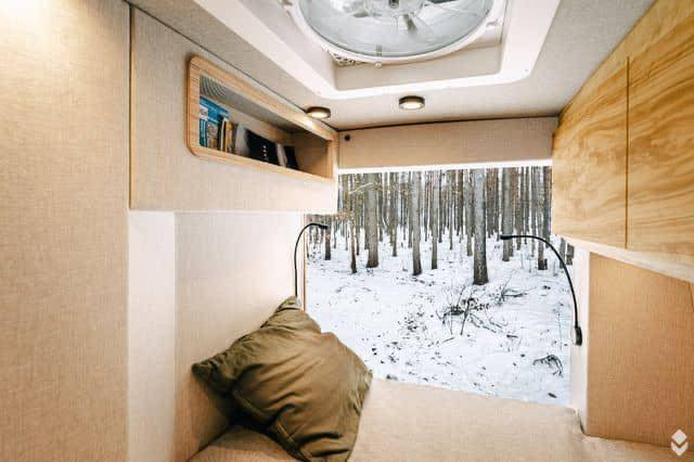 Le Maxxvent monté au-dessus du lit fournit suffisamment d’air frais dans la voiture en cas de besoin.