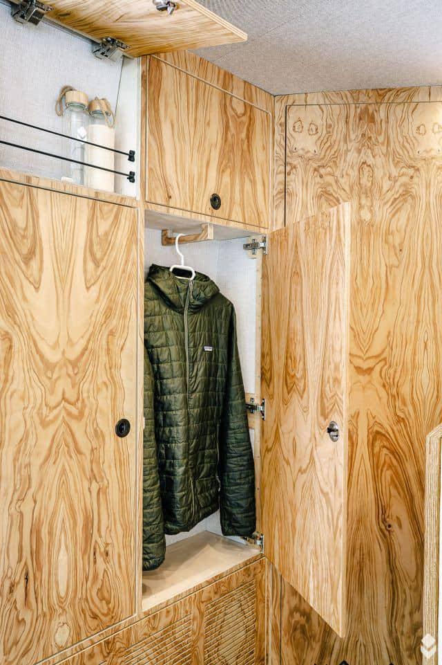 De nombreux placards et tiroirs sont disponibles dans toute la voiture. Le garage est équipé de lignes aériennes dans lesquelles vous pouvez attacher des équipements.