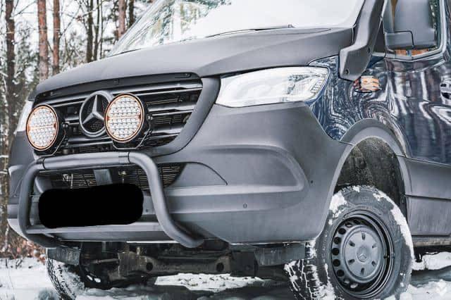 De grands feux auxiliaires de 9 pouces à l’avant et des feux LED plus petits à l’arrière, près de la caméra de recul, fournissent une bonne lumière en marche arrière ou simplement pour éclairer l’espace extérieur.