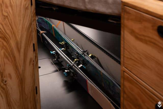 De nombreux placards et tiroirs sont disponibles dans toute la voiture. Le garage est équipé de lignes aériennes dans lesquelles vous pouvez attacher des équipements.