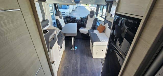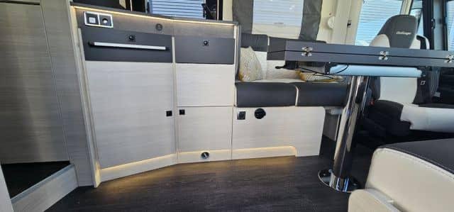 Le véhicule est équipé d’un salon SmartLounge très spacieux avec une table amovible et pliable. Le salon SmartLounge se compose de deux grands canapés qui se font face et qui peuvent être facilement transformés en sièges individuels indépendants avec harnais à 3 points pendant la conduite. Les deux sièges arrière sont dans le sens de la marche et sont équipés d’ISOFIX.