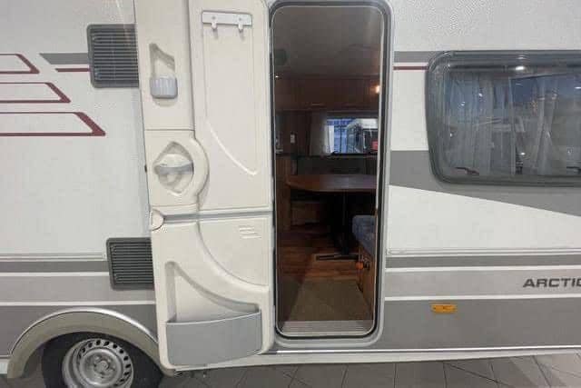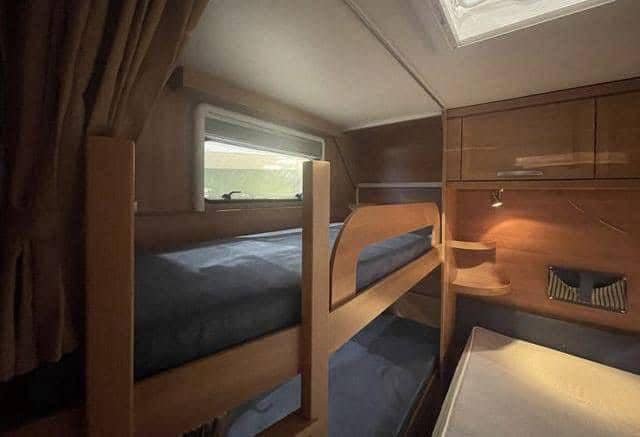 Superbe Hymer Arctic Star maintenant en stock ! Caravane familiale parfaite avec lit double et lits superposés.