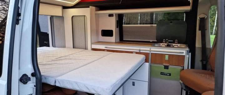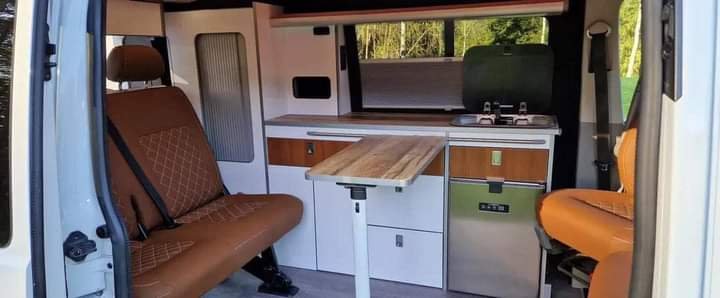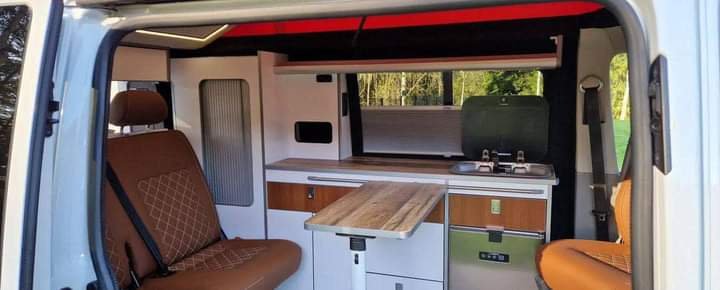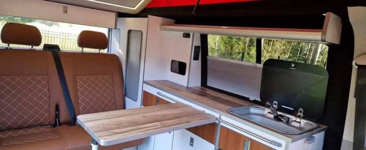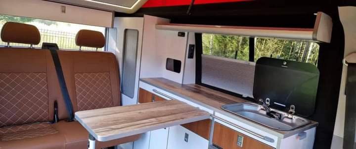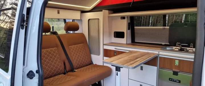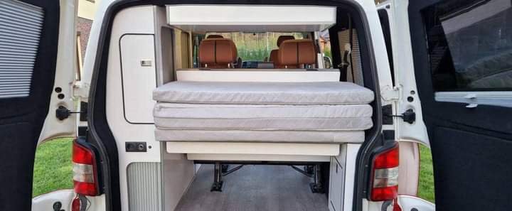 VW T5 de 2015. Moteur 2.0 Tdi 140 chevaux, boite manuelle 6 rapports. Équipé d’une grande radio tactile, capteurs de stationnement, climatisation, el. vitres et rétroviseurs, régulateur de vitesse ordinateur de bord. L’état de la voiture est très bon. Comme vous pouvez le voir, la voiture a une toute nouvelle carrosserie Camper, qui comprend :